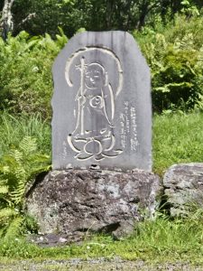 After that, she renewed her vows and eventually painted another 1.5 million Jizos. When Eido Shimano Roshi visited Ryutaku-ji in Japan, Ms. Ishikawa gave him many Jizos. After she finished her two millionth Jizo, duplicates were made for Ryutaku-ji and Dai Bosatsu Zendo. The image was eventually carved into stone and now welcomes you upon your arrival to DBZ.